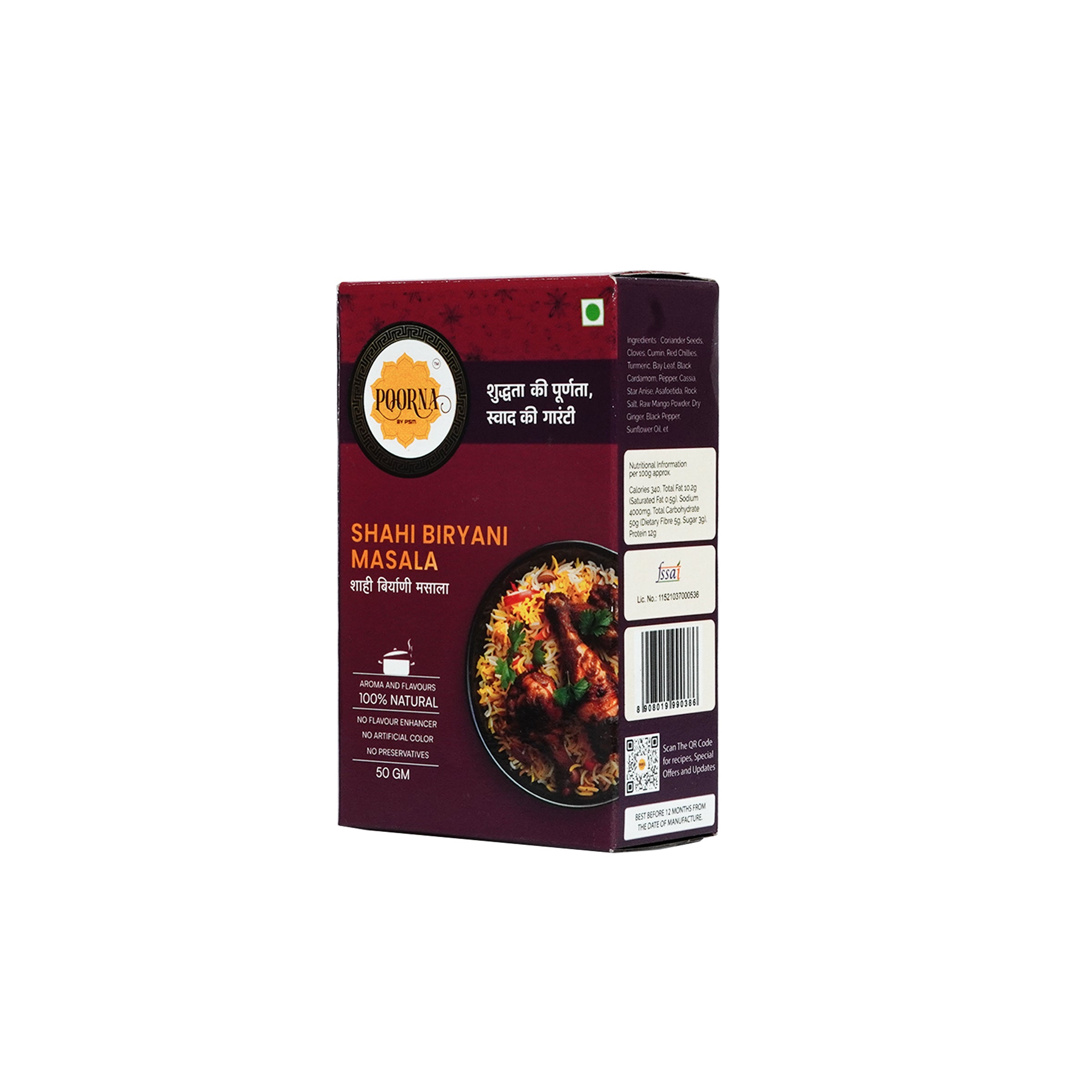 Introducing POORNA Biryani Masala - the perfect blend of spices, herbs, and condiments that capture the authentic taste and aroma of India's beloved biryani. This masala is a must-have for any biryani lover, adding a depth of flavour and complexity to your dish.