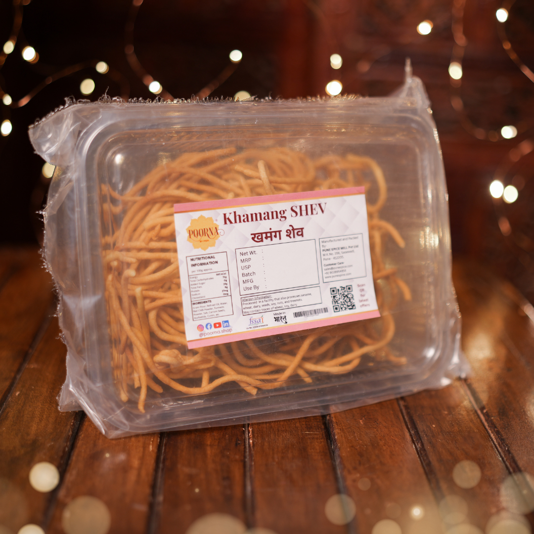 Unlike the finer shev used as a topping, POORNA’s Shev is slightly thicker, making it a complete snack in itself. It can be enjoyed on its own with a hot cup of tea, added to Shev Chiwda for a festive mix, or paired with other Diwali sweets like Shankarpali and Karanji to create the ultimate faral platter for family gatherings. The balance of spices, the aroma of carrom seeds, and the crunchiness of each strand make this Shev an instant favourite for all age groups.