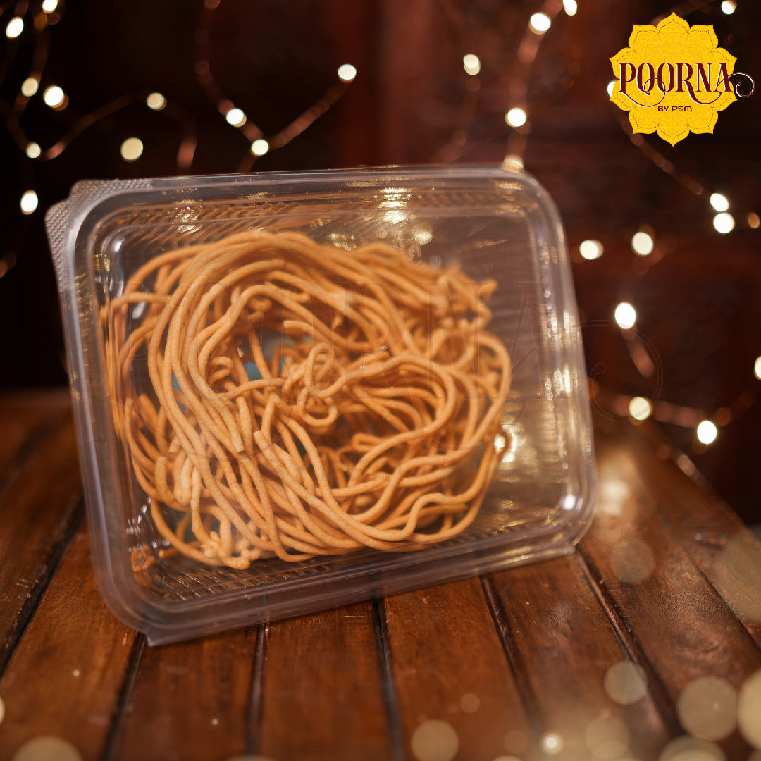 When we think of Diwali faral, a few timeless snacks instantly come to mind: Chakli, Shev, Shankarpali, Karanji, and Besan Laddu. Among these, Shev (also known as Sev) holds a special place as the versatile, savoury companion to every Diwali platter. At POORNA, we bring you authentic handmade Shev, prepared using traditional Maharashtrian methods that have been passed down through generations.