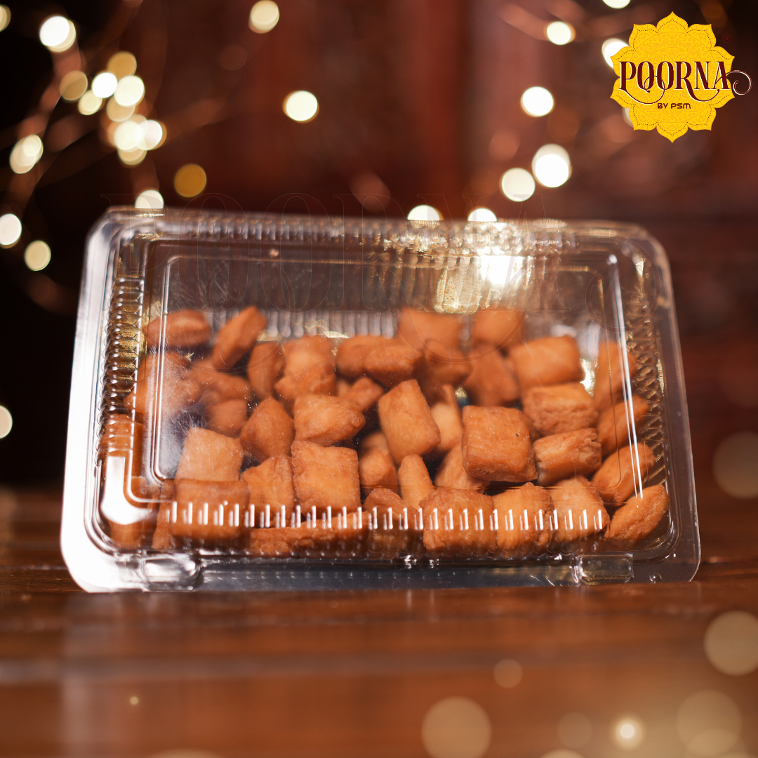 Each piece of POORNA Shankarpali is crispy on the outside and soft on the inside, striking the perfect balance that makes it ideal as a tea-time snack. Whether you enjoy it with evening chai, share it with guests during Diwali, or pack it as a thoughtful festive gift, our Shankarpali is crafted to bring joy to every occasion.